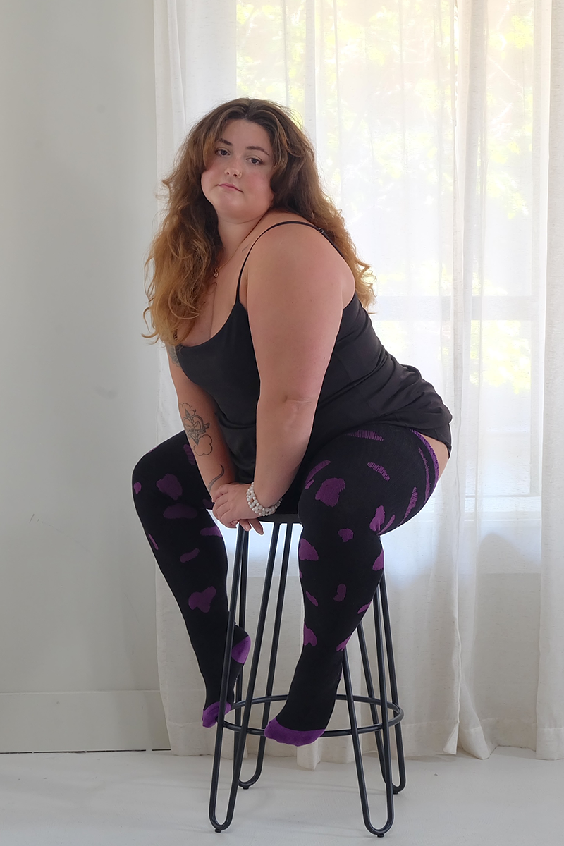 Thunda Tūbbies - Cow Print (Black w/Purple Spots)