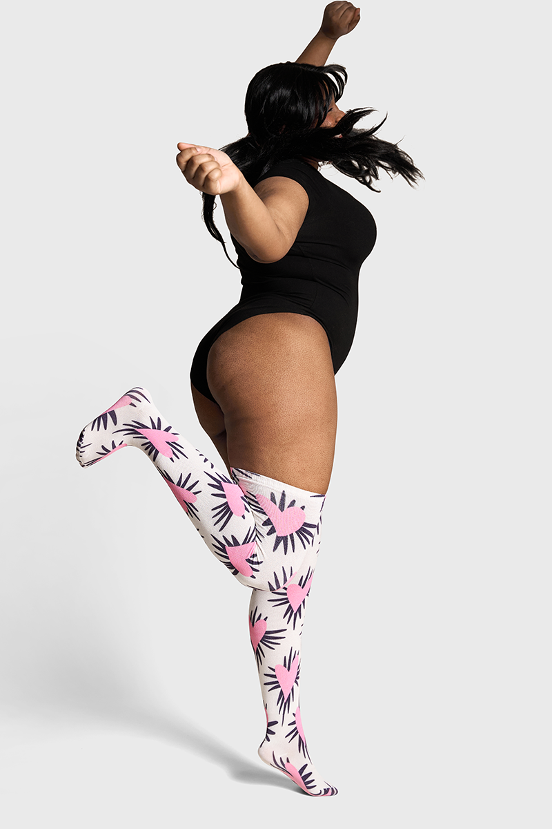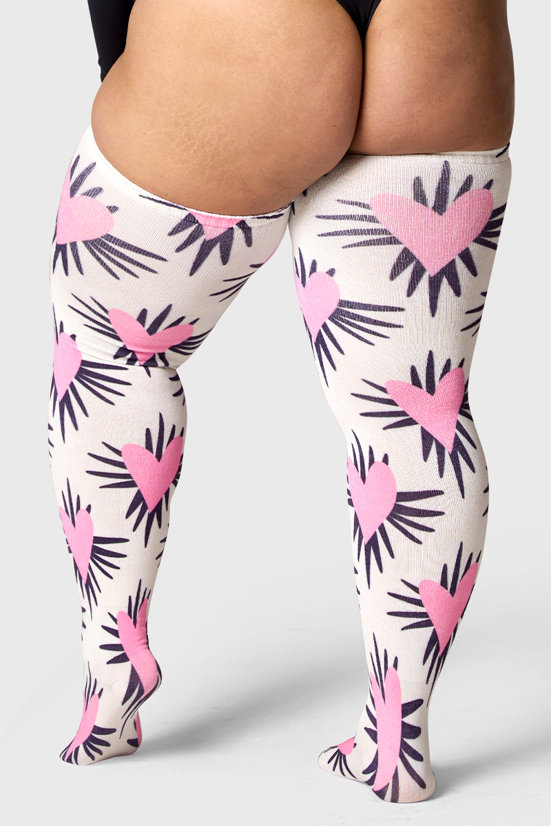 Love Spiked is not your sweet, predictable Valentine sock and that’s exactly the point. This Artisan thigh-high features bold pink hearts edged with sharp, graphic spikes, blending romance with attitude. Printed on our lightweight, breathable Artisan fabric with signature stretch that fits and flatters curves, this limited-edition design is made to stand out and move with you. Part of our first Valentine’s Day drop, Love Spiked is a wearable statement piece that proves love doesn’t have to be soft to be sexy.