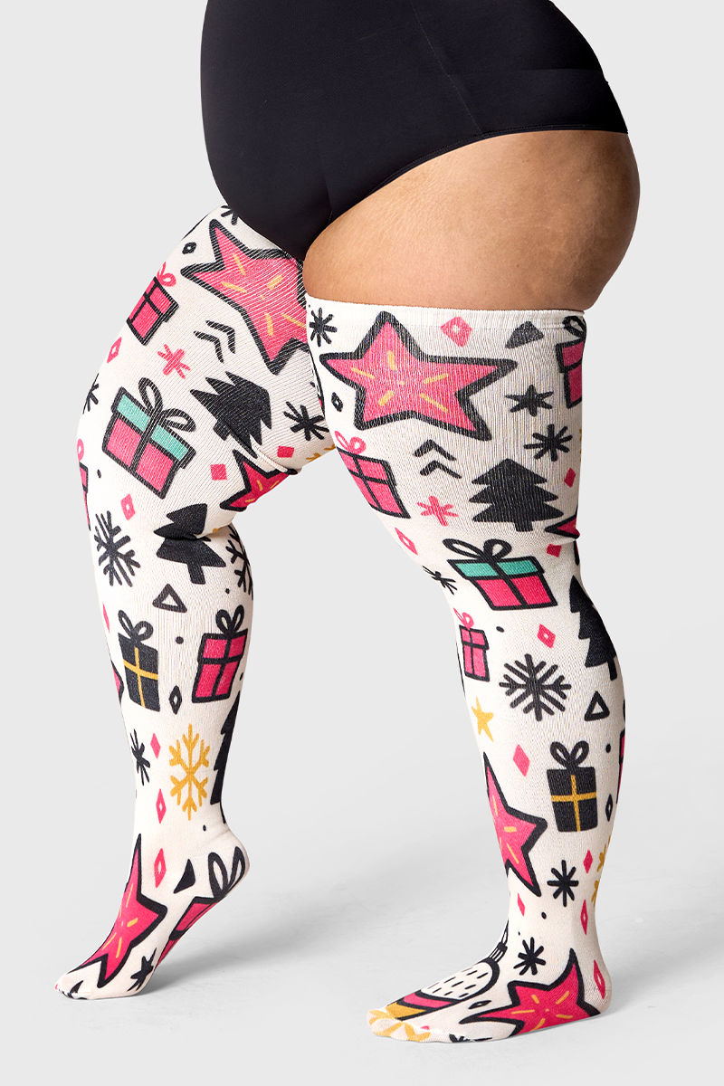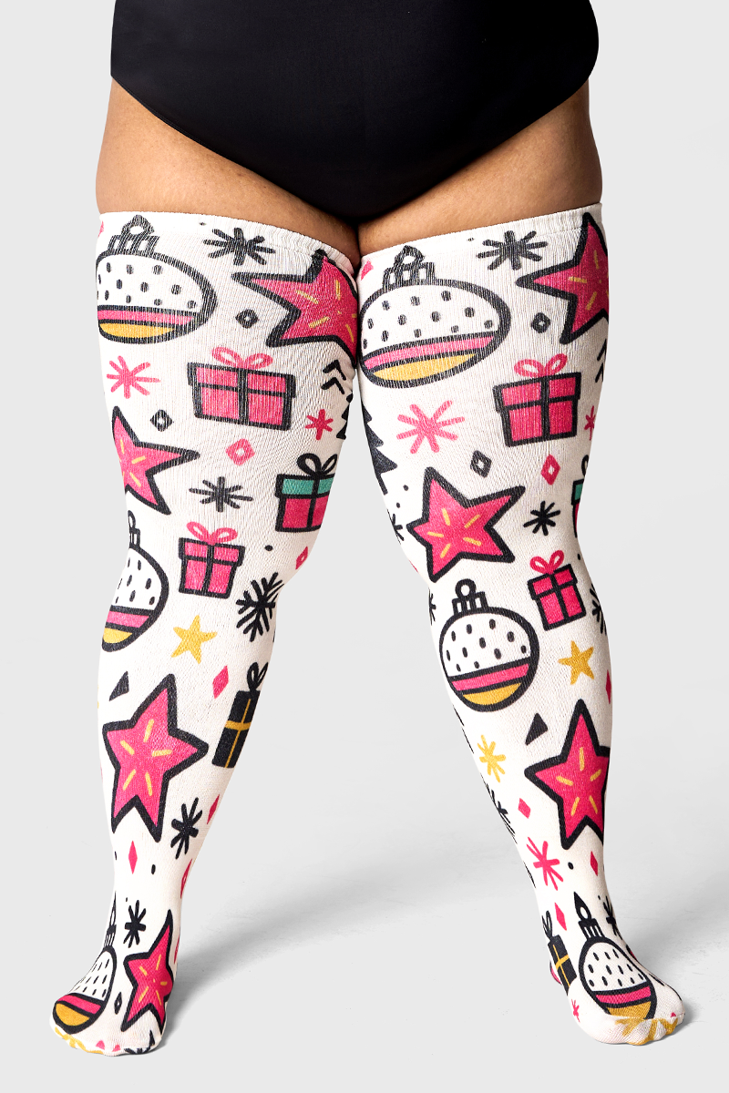 A curated collection of our viral plus size thigh high socks designed for individuality, creativity, and comfort. Made with our newest lightweight, print-ready fabric and signature breathable stretch, each pair is a wearable work of art that fits up to 42 inches. Inspired by the spirit of true artisans: creators who bring custom design and craftsmanship to life. From bold prints to subtle textures, these thigh high socks go beyond basics to become statement pieces made to move with you. Every drop is hyper-limited. No restocks, no reruns. Once a style sells out, it's gone for good. The Artisan Collection is your canvas: limited by design, infinite by intention.