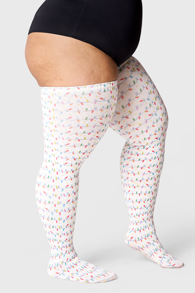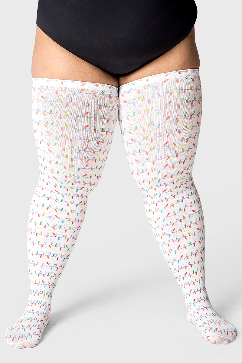 Twinkle Toes brings pure holiday cheer with a sprinkle of multicolored Christmas lights from thigh to toe. Bright, fun and festive, this pair shines on its own while keeping things cozy in our ultra-stretchy, breathable Artisan fabric. If you love a playful pop that matches the season’s sparkle, these socks are your new must-have.