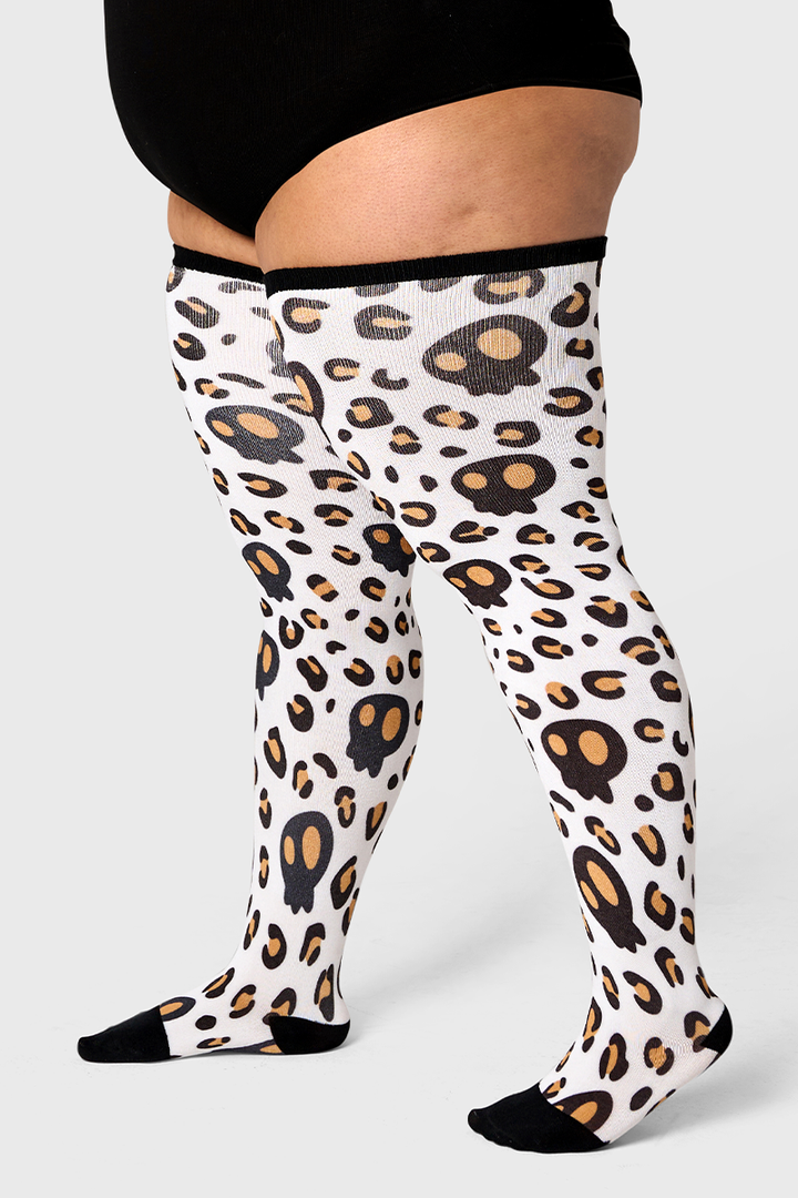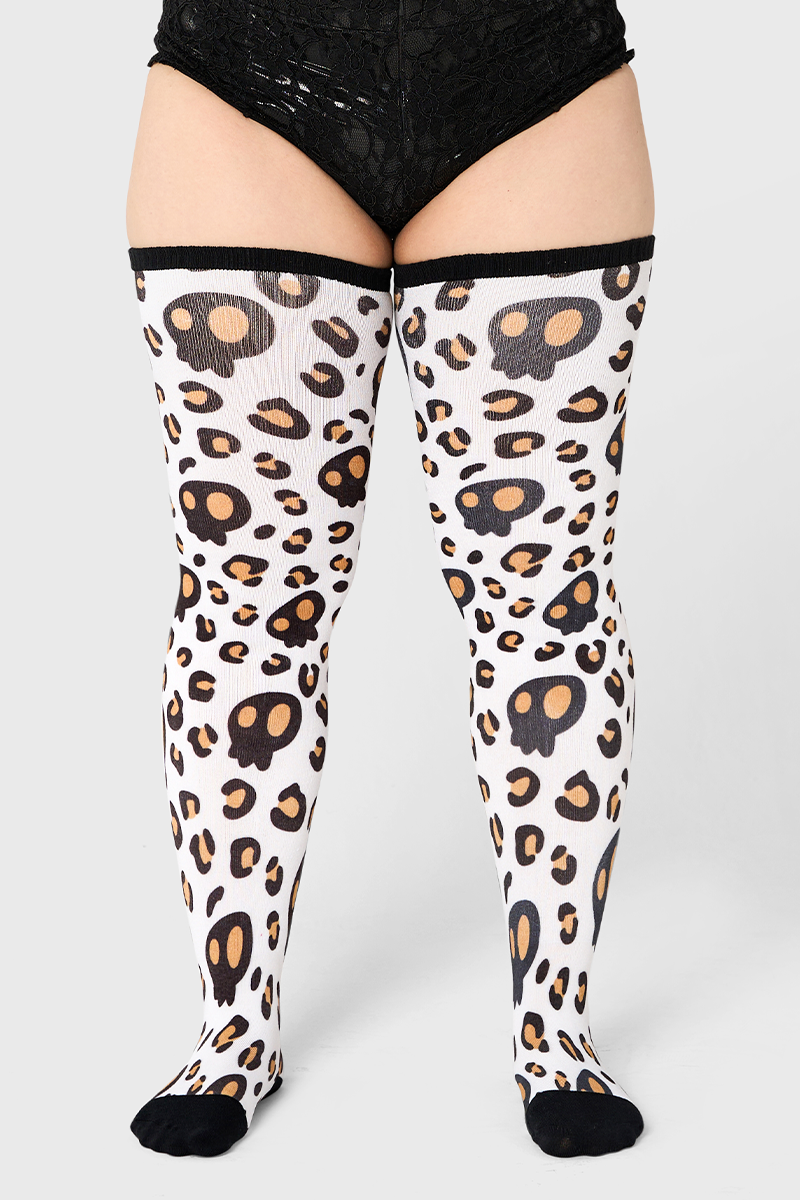 Bring the look full circle. These thigh-highs mirror the Wild Skull leopard and skull pattern for a fierce, photo ready set. Built with our signature comfy stretch for juicy thighs, they’re the perfect match to the new Wild Skull Onesie, or a statement on their own. Bundle with the onesie to save. Discount applied at checkout.