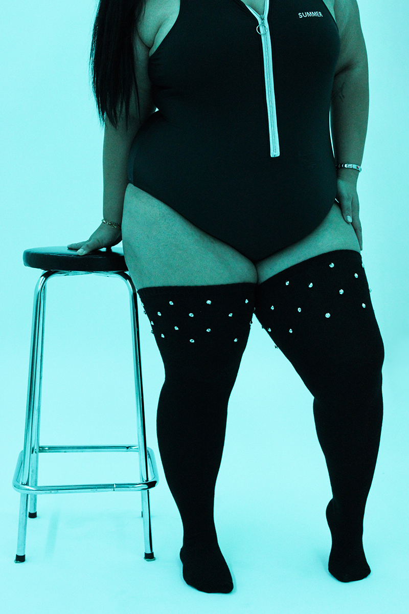 Edge meets comfort in Studded, an all black Thunda Tubbies thigh high crowned with sleek silver-tone studs at the upper thigh. The lightweight cotton blend keeps things soft and breathable, while our signature stretch (up to 42") ensures a secure, curve loving fit. Dress it up, go full goth, or add a little bite to any look. This limited release won’t stick around.